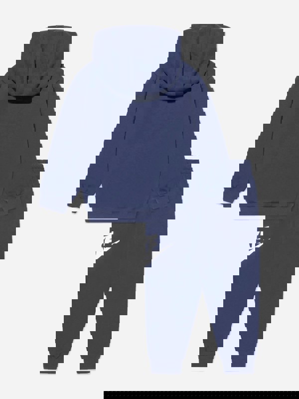 This Nike Kids Club Fleece tracksuit comes in midnight navy and combines a clean, minimalist look with practical everyday details. Made from cotton jersey with a fleece lining, it offers a soft, structured feel across both pieces. Branding is kept classic with the Nike Swoosh logo and Nike logo.