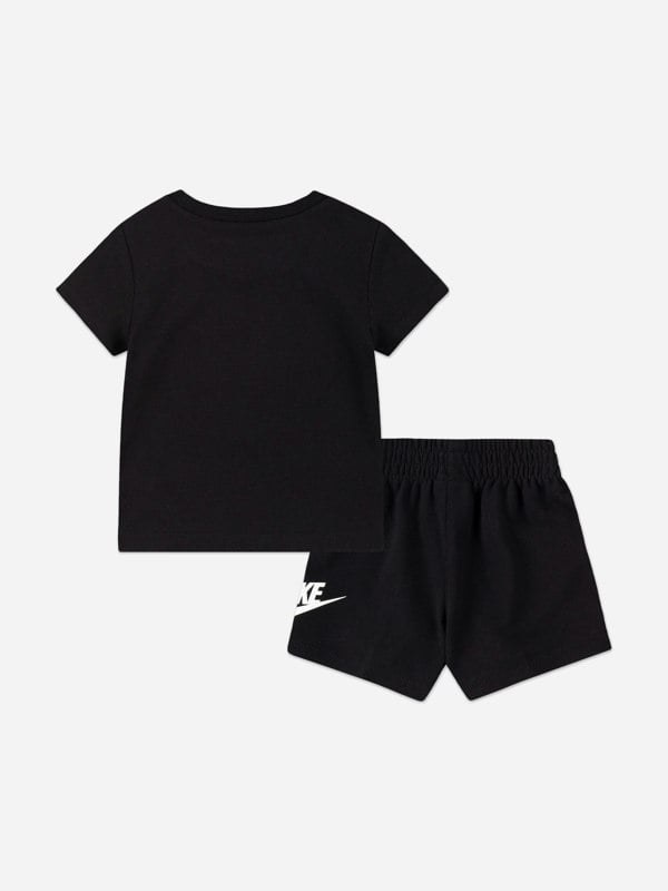 Nike Kids Club T-shirt and shorts set in black. A two-piece set with a matching top and shorts, suitable for everyday wear. The monochrome colourway keeps the look simple and coordinated.