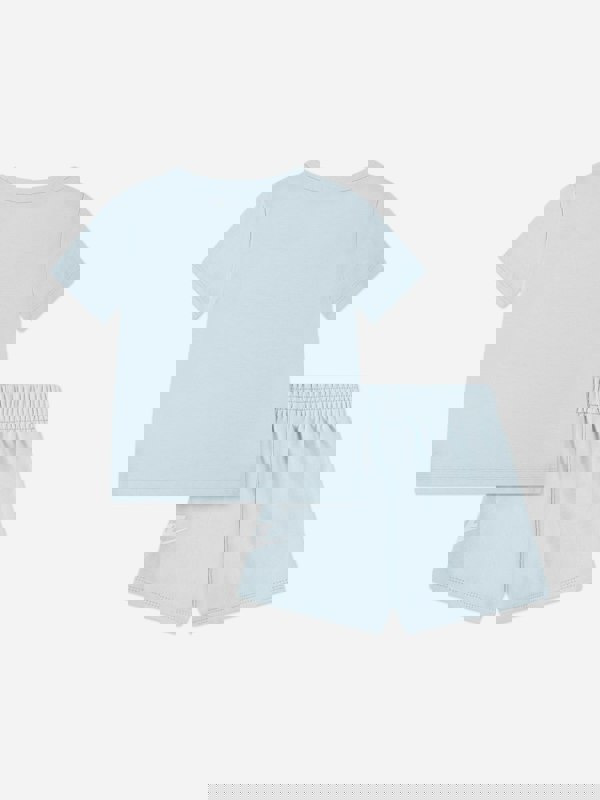 Nike Kids Club T-shirt and shorts set in blue for SS2025. This two-piece set includes a T-shirt and matching shorts, finished in a vibrant blue hue.