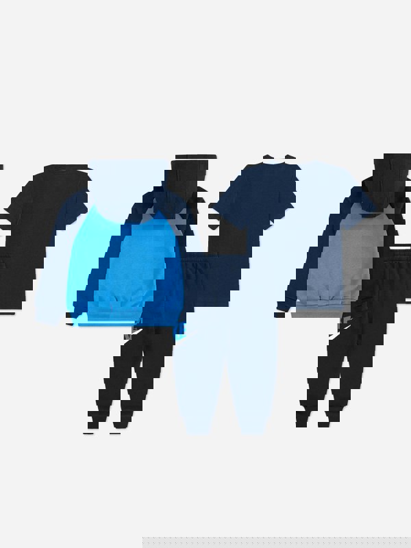 The Nike Kids Colourblock HBR tracksuit comes in navy with a colourblock design and contrast accents. This two-piece set offers a coordinated look for everyday wear.