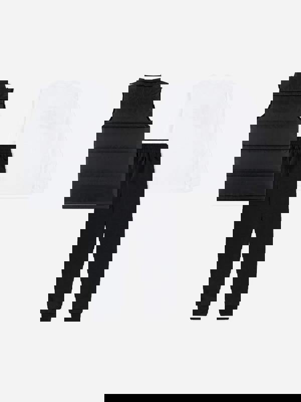 Introducing the Kids NSW 3 Piece Vest Set in chic black, a splendid addition to any child's wardrobe for AW2025. By Nike, this ensemble blends luxury with playful versatility perfectly suited for both boys and girls.