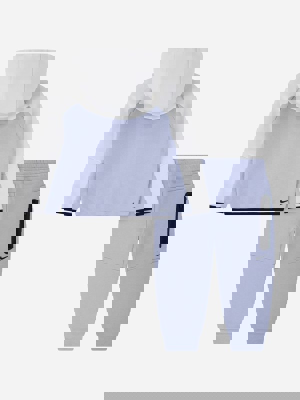 This Nike Kids NSW Tech Fleece tracksuit comes as a 2-piece set in blue. Made from bonded jersey knit material, it includes a top with a full-zip closure and ribbed cuffs for a neat finish. The matching tapered trousers complete the coordinated look.