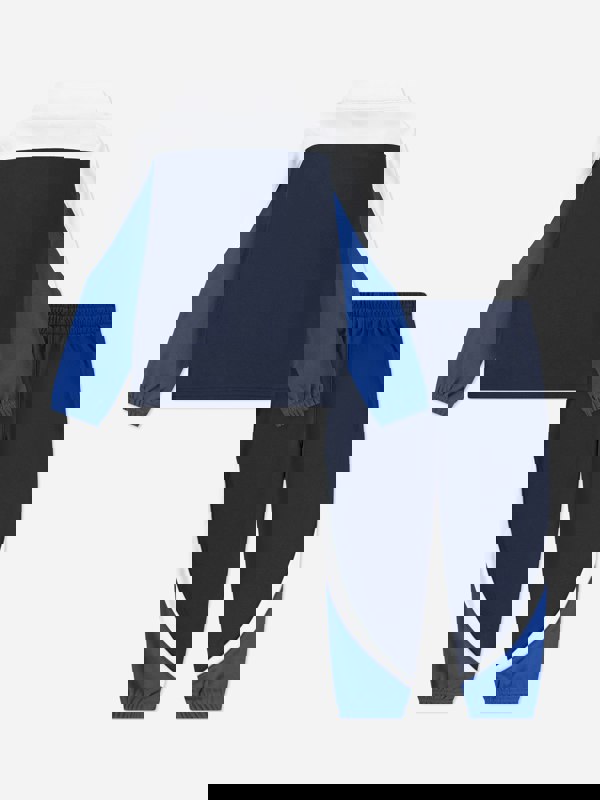 This Nike kids Propus colourblock tracksuit comes in navy and includes a coordinated set for everyday wear. The colourblock design adds a clean, modern look, while the rich navy tones keep it easy to pair across seasons.