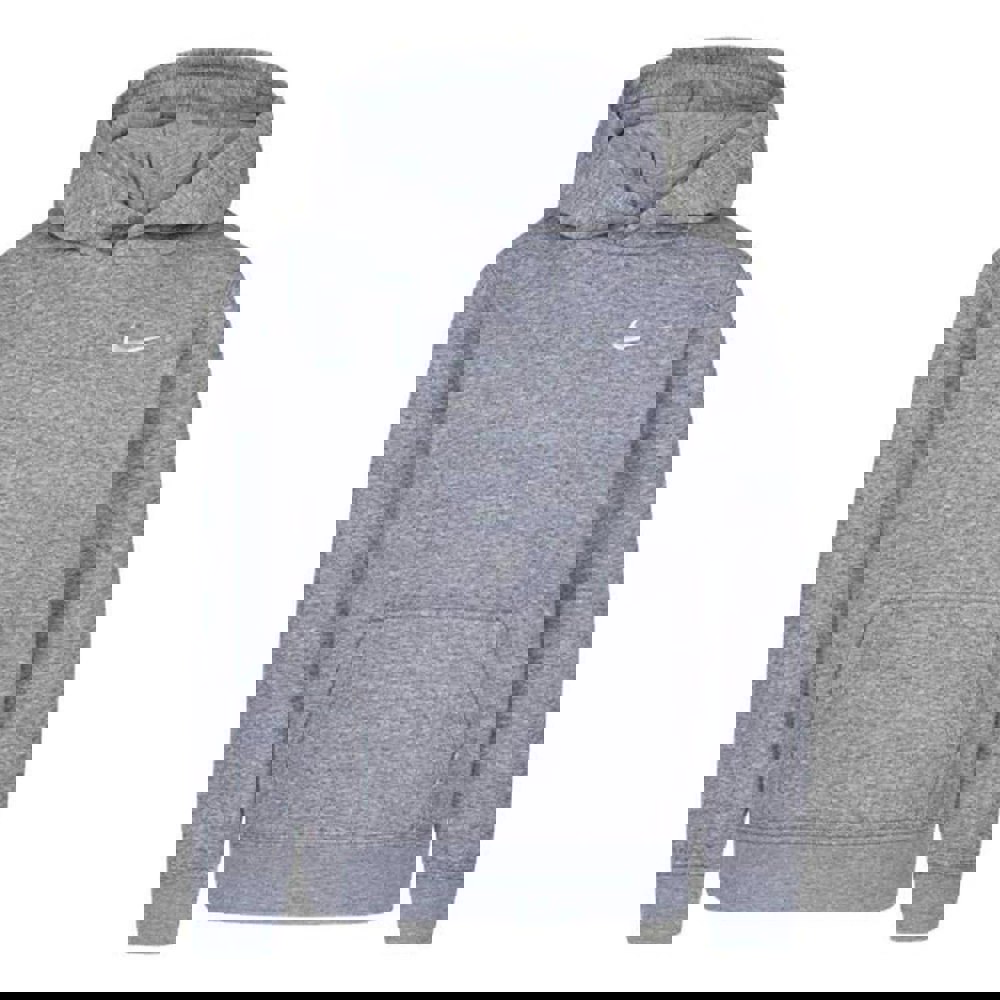 Made from a cotton-rich blend, this Nike kids hoodie combines a knitted outer with a soft brushed back fleece lining. The grey finish is completed with an embroidered logo for a clean, sporty look.