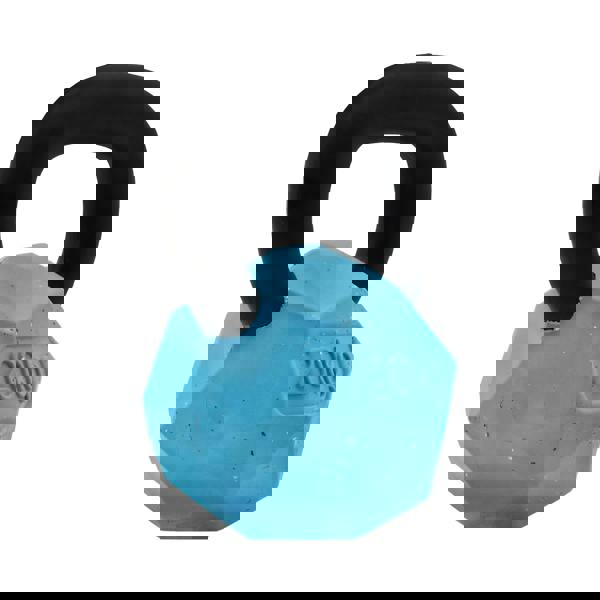 The Nike Max Fusion Kettle Bell Dog Toy is a blue dog toy designed in a ball and weight shape. Made from natural rubber, it is durable and flexible for everyday play. The toy can be filled with treats and is designed for slow release, helping to keep dogs engaged during playtime. It is also described as gentle on teeth and intended to aid dental health.