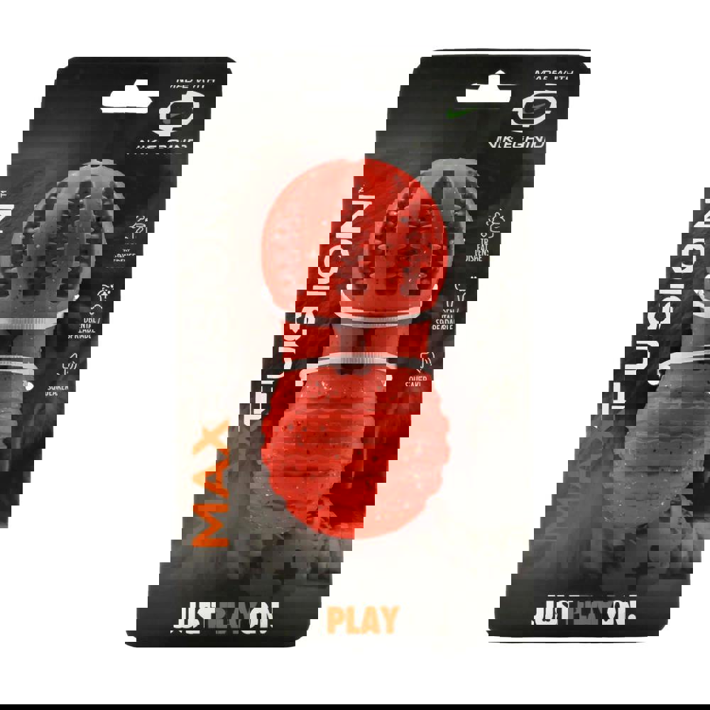 The Nike Max Fusion Weeble Dog Toy is a textured, patterned toy in a bone design, finished in orange. Made from natural rubber, it is soft yet durable for everyday play.