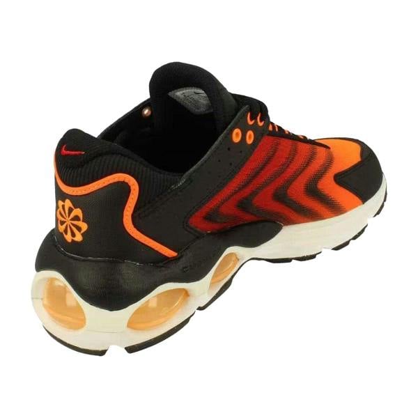 Nike Air Max trainers in orange with a low-cut profile and round toe. The upper combines mesh and textile, with a textile lining and textile insole. A synthetic outsole completes the construction. The design includes a badge and Swoosh detailing, finished with a lace-up fastening.