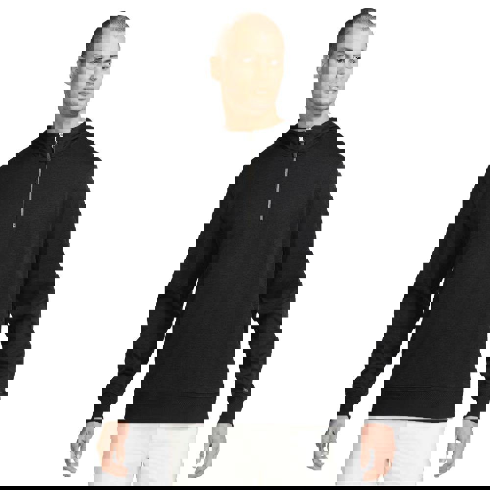 Built for the course, the Nike Mens Dri-FIT Golf Hoodie is a midweight, knitted layer with a clean plain finish. Shown in black with brushed silver detailing, it combines a hooded neckline with a practical half zip for easy on-and-off between rounds. Long sleeves and ribbed trims at the cuffs and hem keep the silhouette neat, while the standard fit offers a straightforward shape for golf and everyday wear.