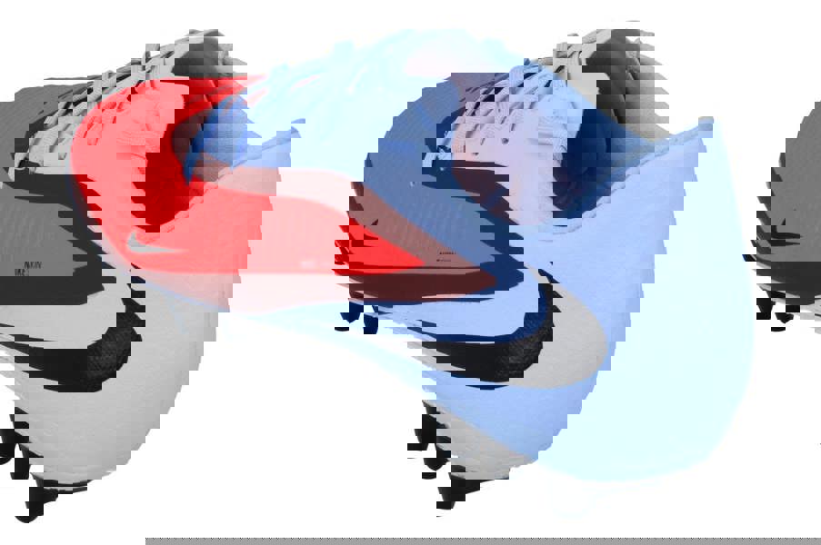 The Nike Phantom 6 Low Academy AG men’s football boots (HQ2322) are designed for the pitch, with a low-cut profile and a clean, modern look. Shown in Royal Tint and Bright Crimson (400), this colourway combines a light blue upper with a vivid red forefoot for standout on-field style.