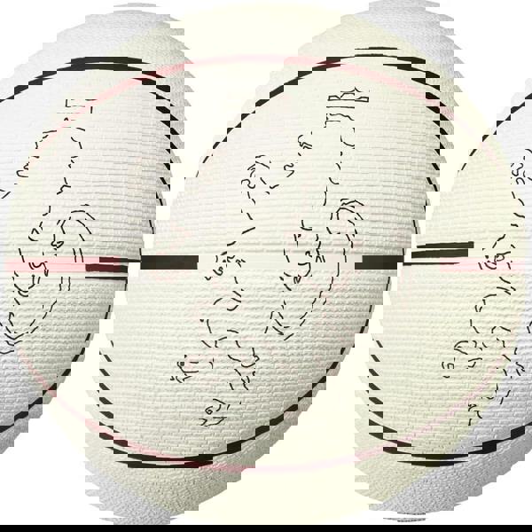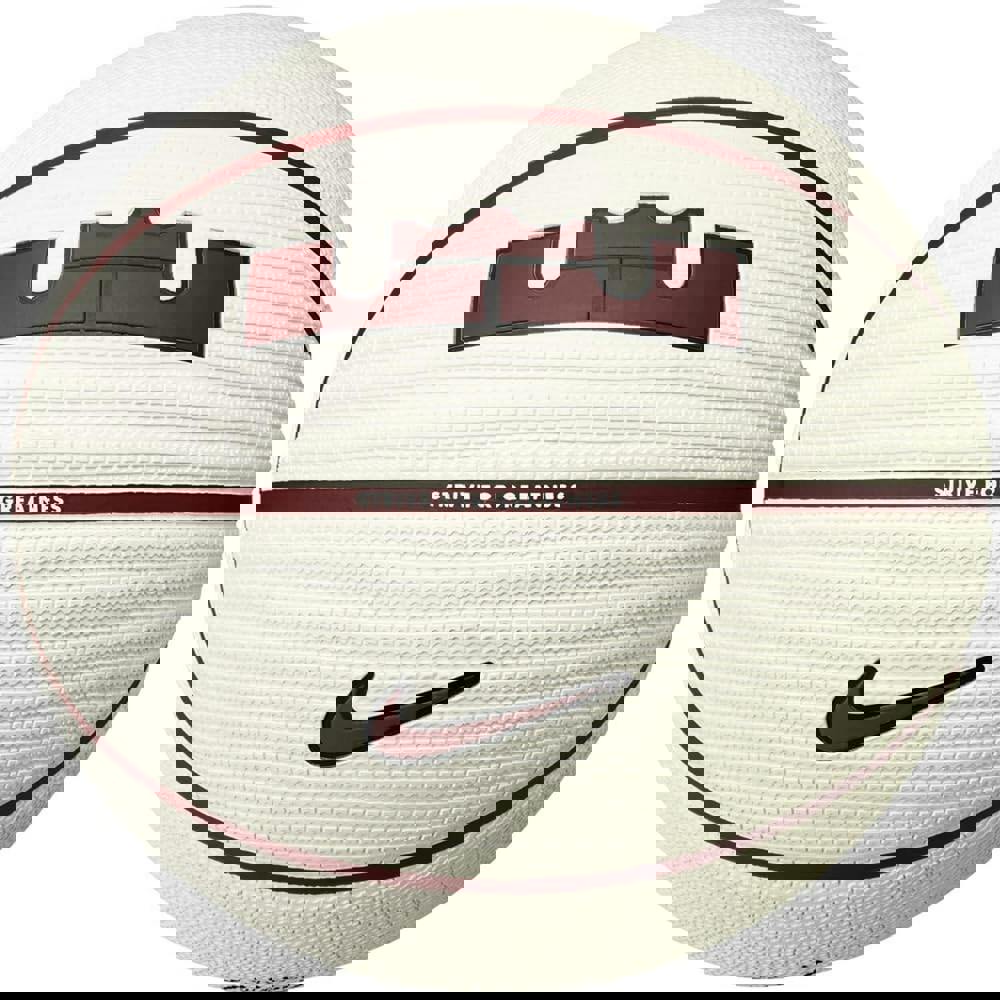 Finished in white, the ball features logo and text detailing as part of its design. A pebbled, textured surface and deep channels support grip and handling during use, while the 12-panel construction helps maintain a familiar basketball feel in play.