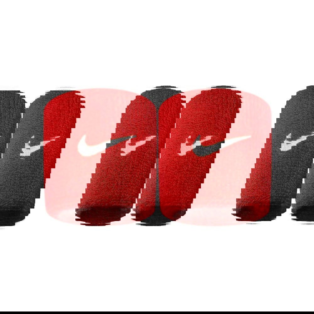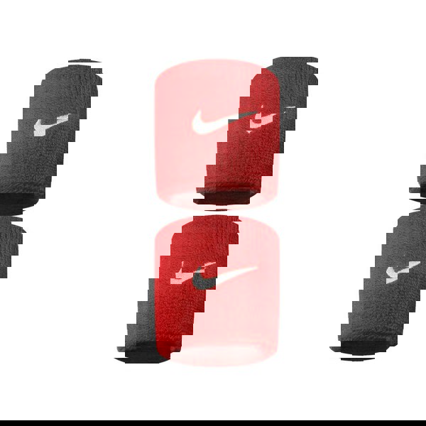 This pack of two Nike Swoosh wristbands comes in scarlet and white, finished with an embroidered logo design. Made from a cotton, nylon, rubber and spandex blend, they use a stretch fabric construction.