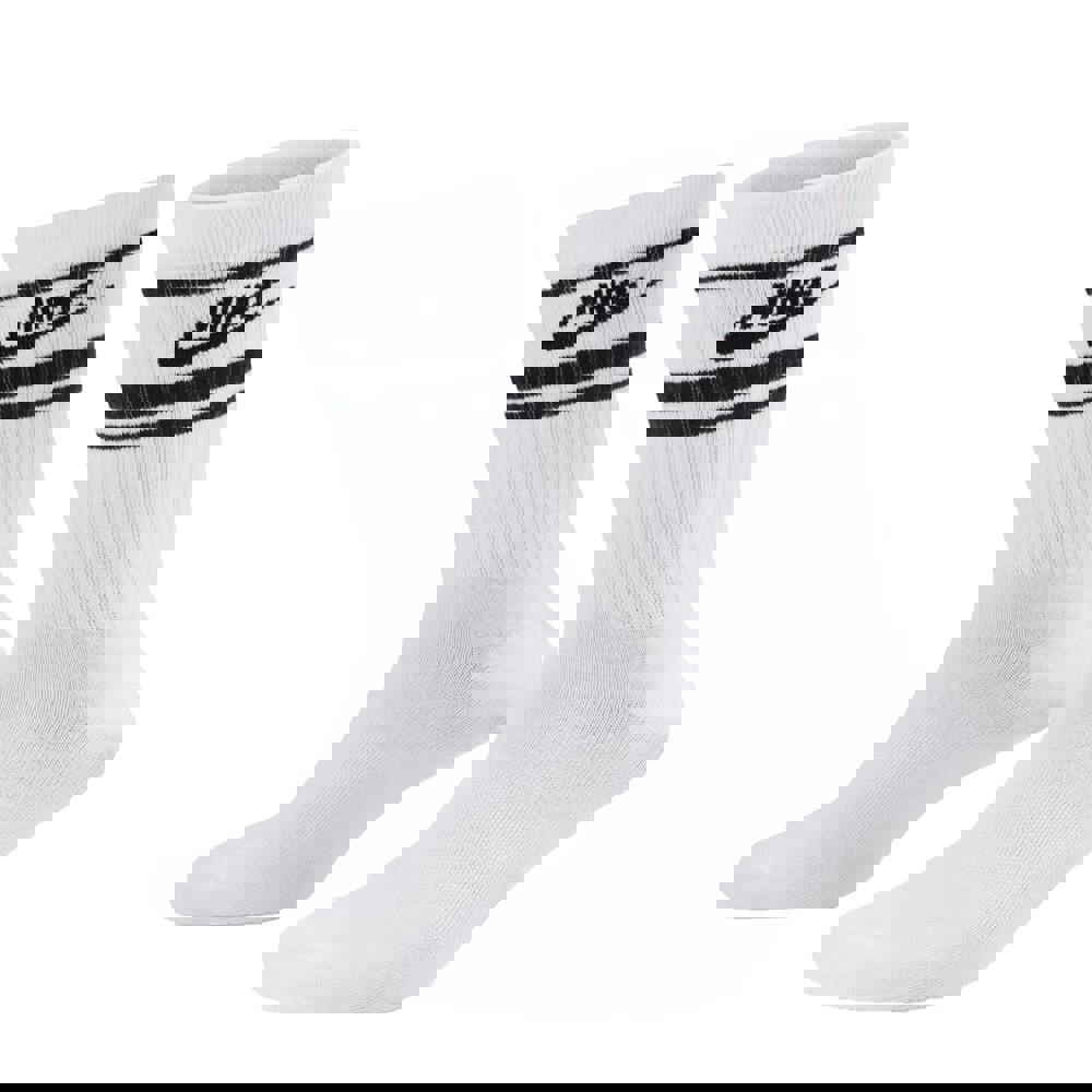 Nike Sportswear Essential Everyday crew socks come in a pack of three, finished in white and black. Made from 97% polyester and 3% spandex, they have a soft-touch feel with added stretch. The crew cut is paired with a ribbed cuff for a secure, structured finish.