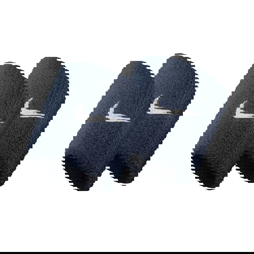 This Nike swoosh wristband set includes two wristbands in navy. Made for sport, it offers a simple, practical accessory for training and active use.