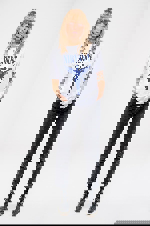 An official licensed Nirvana Ladies T-Shirt featuring the 'Angelic Blue Mono' design motif. This high quality T-Shirt is available in a white colourway. High quality soft-style cotton ladies t-shirt featuring front printing. Comes in a wide range of sizes from Small through XX-Large, subject to availability.