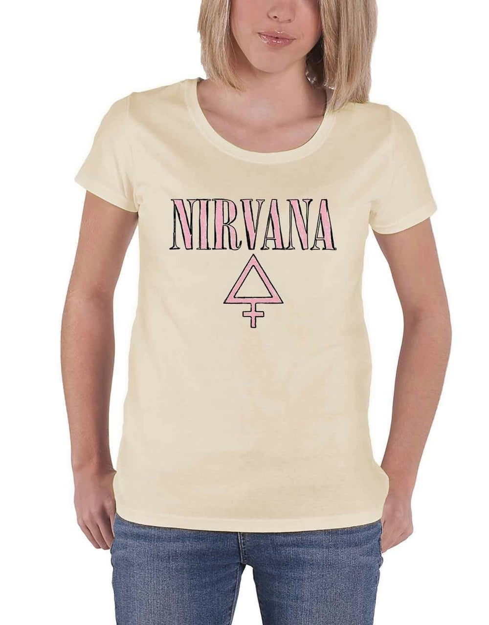 An official licensed Ladies Nirvana Tee featuring the 'Femme' design motif. This high quality Tee is available in a sand colourway. Ladies fit short sleeved soft-style cotton tee featuring front printing, short sleeves & crew neck. Comes in a wide range of sizes from Small through XX-Large, subject to availability.