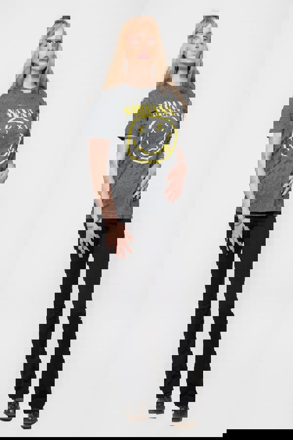 An official licensed Nirvana Unisex T-Shirt featuring the 'Yellow Grunge Smile' design motif. This high quality T-Shirt is available in a brindle colourway. Classic unisex fit soft-cotton style tee with crew neck and short sleeves. Features front and back printing. Comes in a wide range of sizes from X-Small through XX-Large, subject to availability.