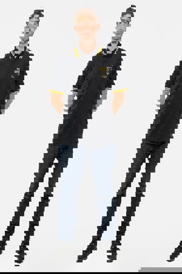 An official licensed Unisex fit Polo Shirt featuring the Nirvana 'Grunge Smile' design motif. This high quality garment is available in a black colourway. Unisex tipped polo shirt featuring tips to collar and sleeves in matching colourway. Embroidered design motif. Comes in a wide range of sizes from Small through XX-Large, subject to availability.