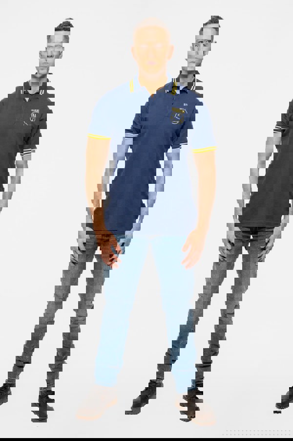 An official licensed Unisex fit Polo Shirt featuring the Nirvana 'Grunge Smile' design motif. This high quality garment is available in a navy blue colourway. Unisex tipped polo shirt featuring tips to collar and sleeves in matching colourway. Embroidered design motif. Comes in a wide range of sizes from Small through XX-Large, subject to availability.