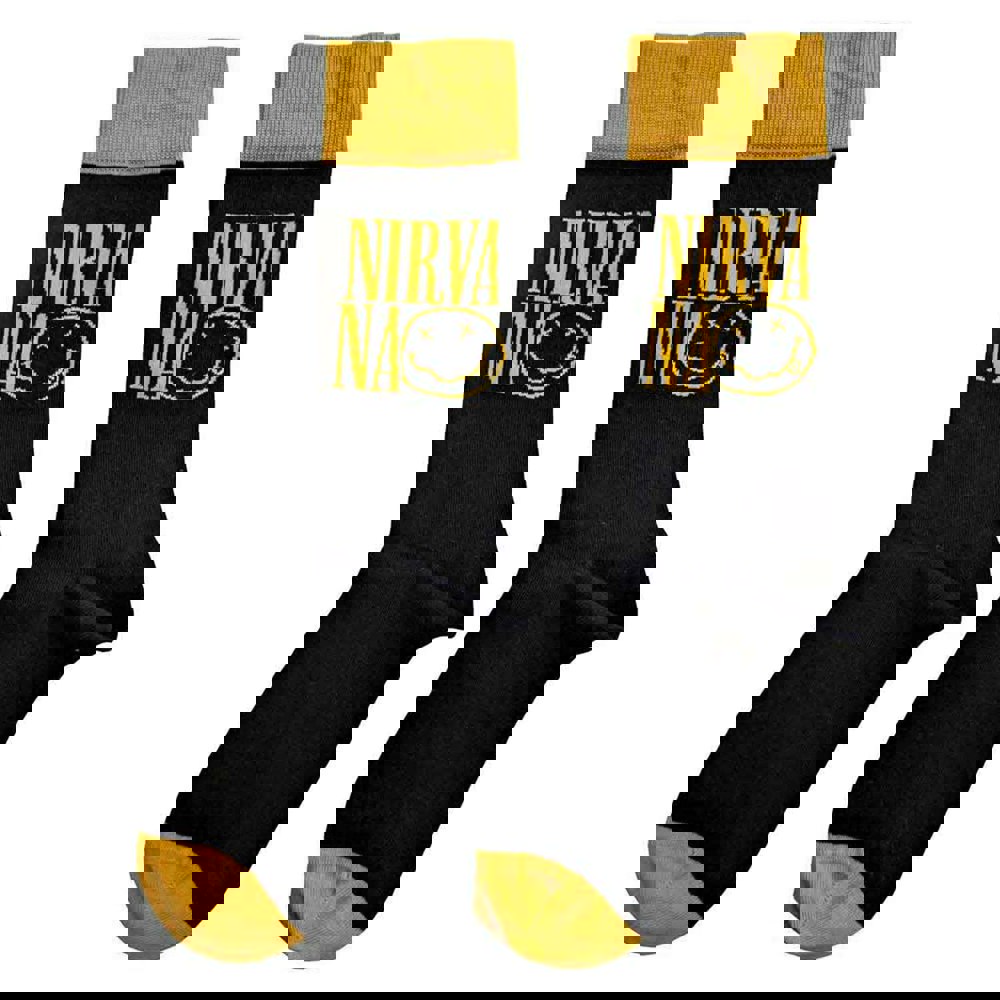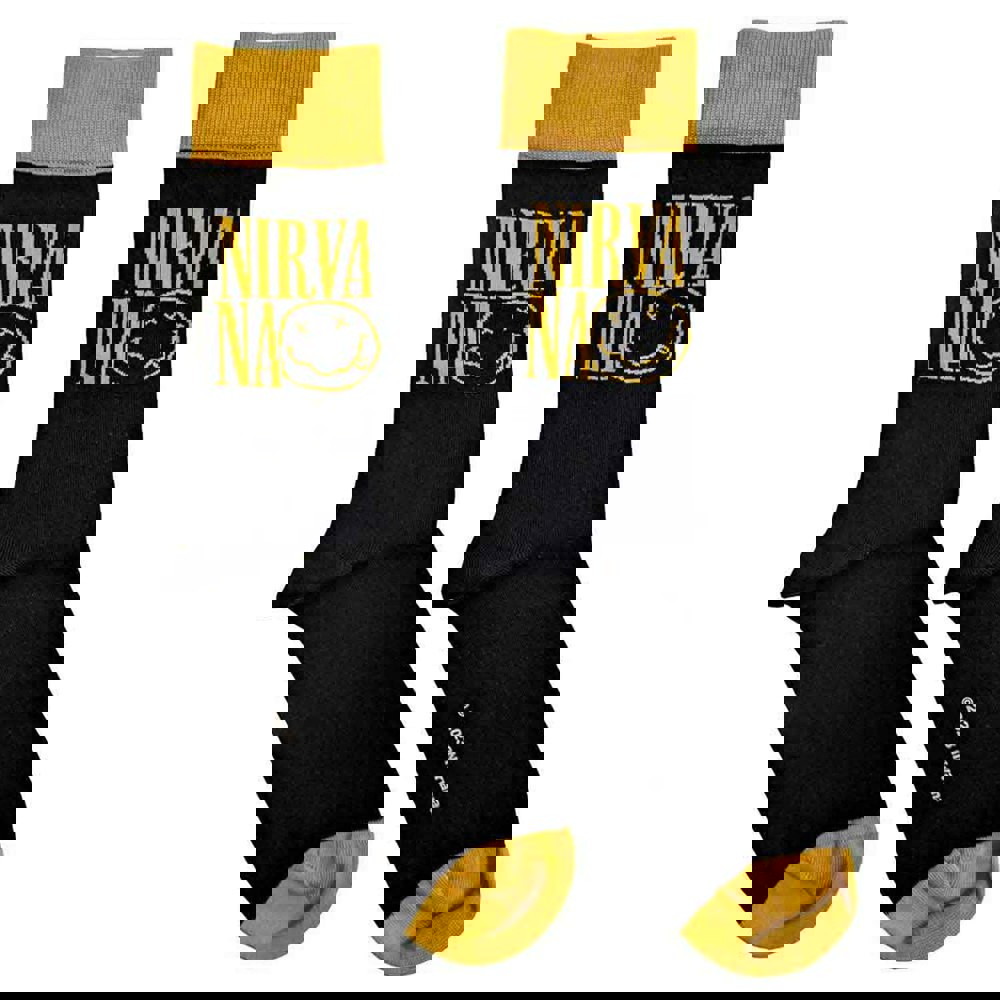 An official licensed Nirvana Ankle Socks featuring the Logo Stacked design motif. 85% Cotton, 12% Polyamide, 2% Elastane