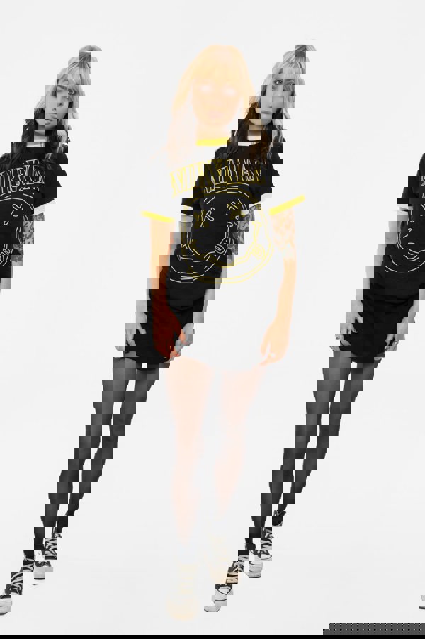 An official licensed Nirvana Unisex Ringer T-Shirt featuring the 'Outline Happy Face' design motif. This high quality Ringer T-Shirt is available in a black colourway. High quality unisex ringer t-shirt featuring front printing. The t-shirt blank is manufactured using materials comprising 60% cotton and 40% polyester. Comes in a wide range of sizes from Small through XX-Large, subject to availability.