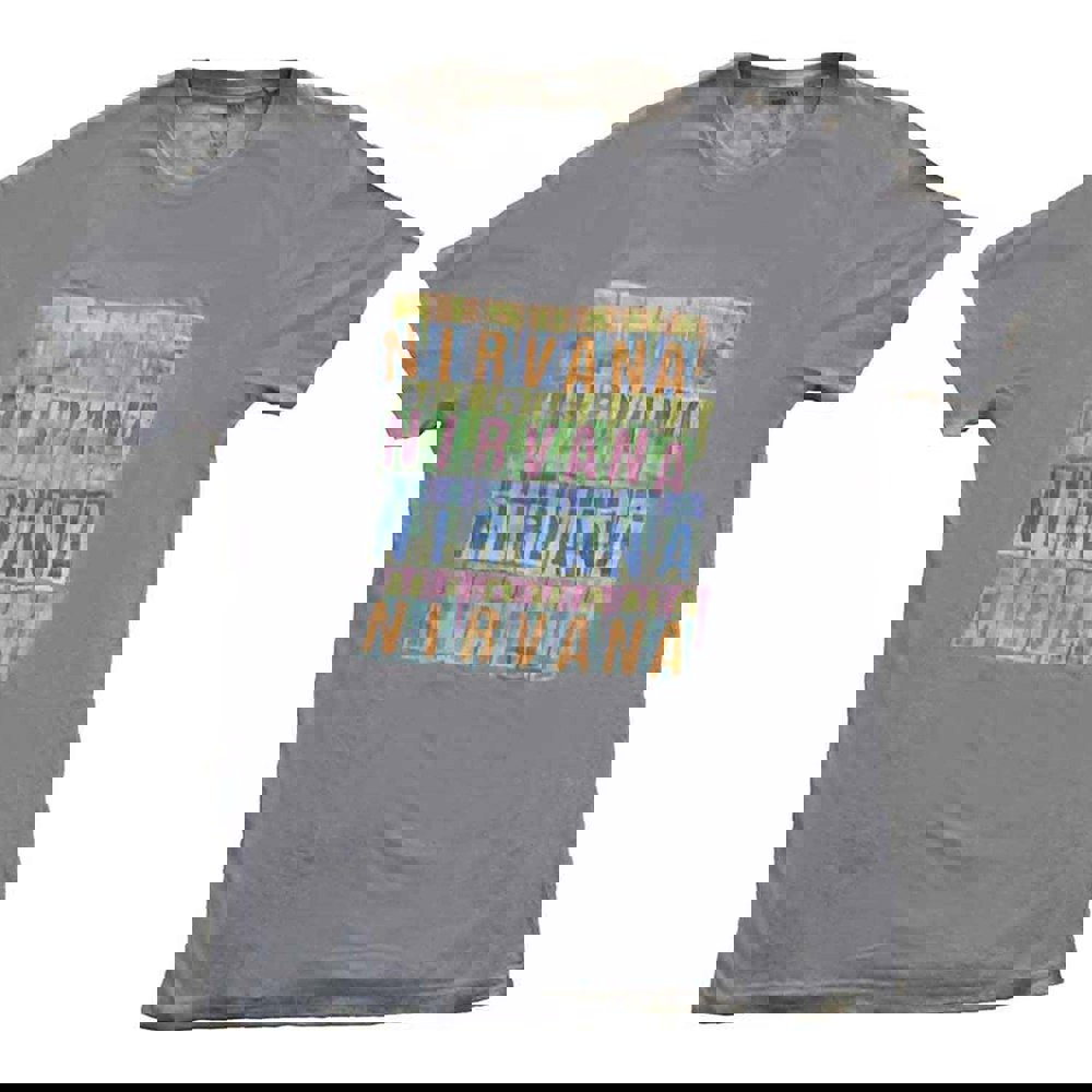 An official licensed Nirvana Unisex T-Shirt featuring the 'Repeat' design motif. This high quality T-Shirt is available in a grey colourway. High quality soft-style cotton tee with short sleeves and crew neck, features front printing. Comes in a wide range of sizes from Small through XX-Large, subject to availability.