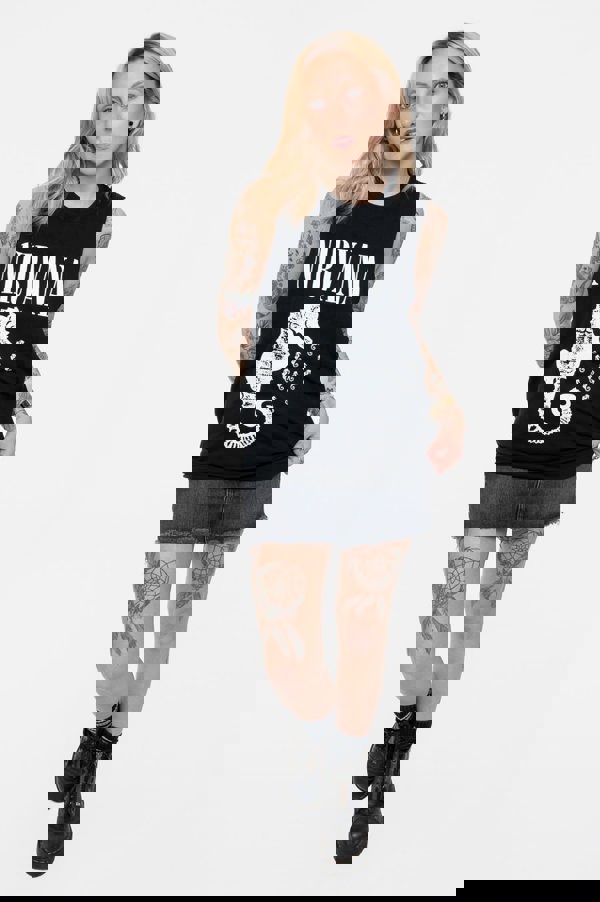 An official licensed Nirvana Vest T-Shirt featuring the Seahorse & Logo Mono design motif. This high quality Tank T-Shirt is available in a black colourway. Comes in a wide range of sizes from Small through XX-Large, subject to availability.