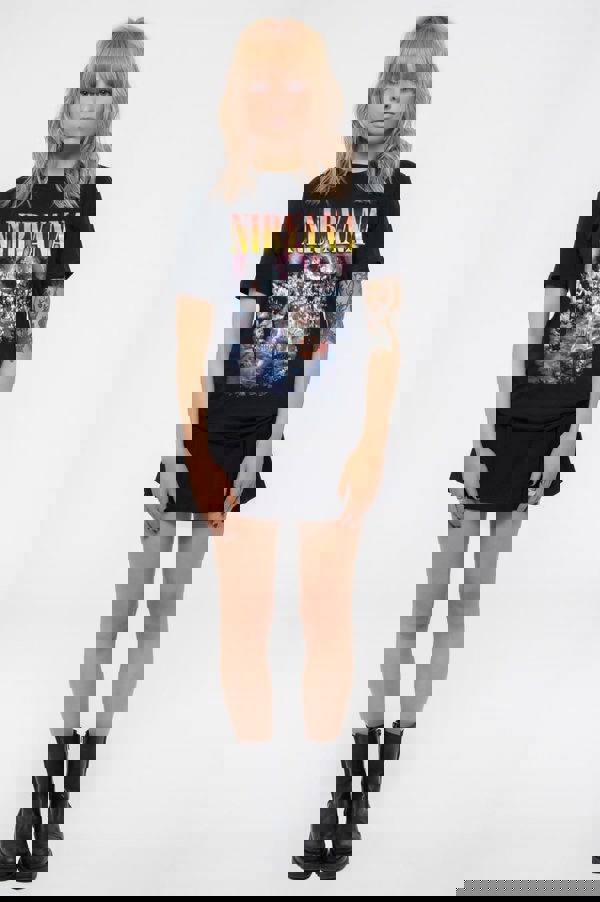 An official licensed Nirvana Ladies T-Shirt featuring the 'Unplugged Photo' design motif. This high quality T-Shirt is available in a black colourway. High quality soft-style cotton tee with short sleeves and front printing. Available in UK Sizes 8 - 20 (US 4 - 16) (EU 36 - 48)