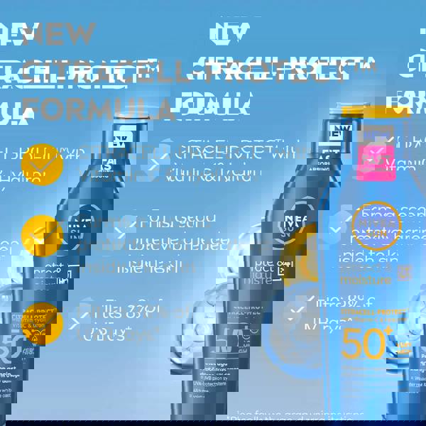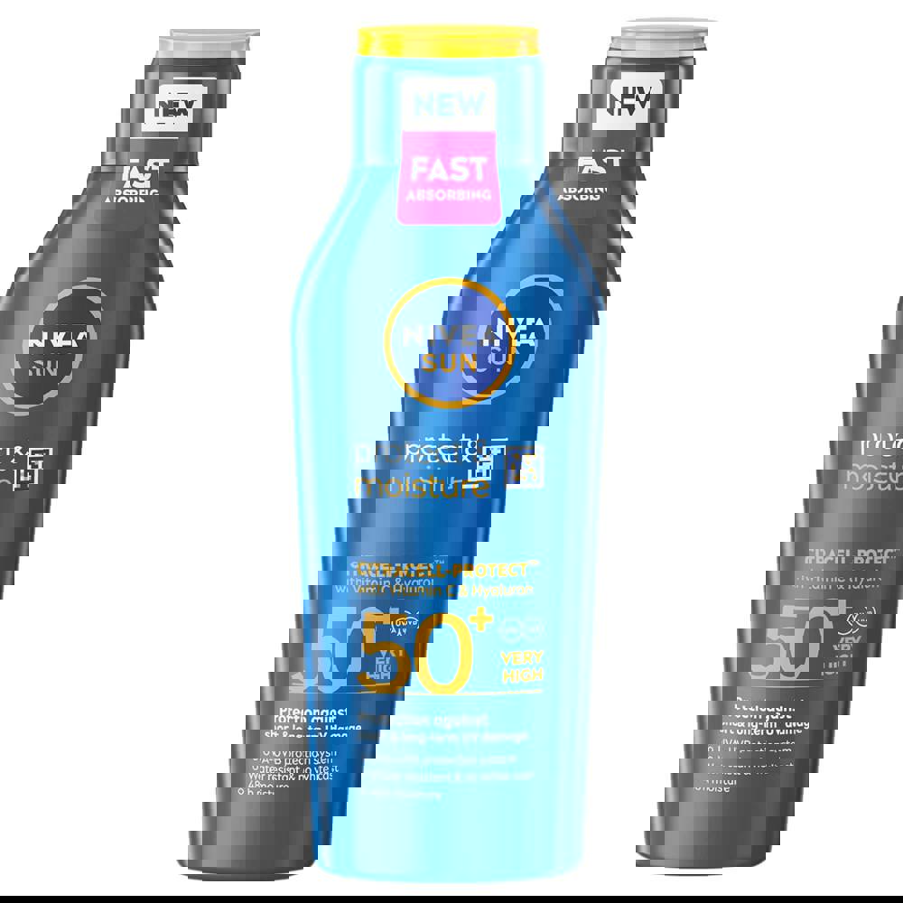 For high sun protection with a moisturising finish, Nivea Sun Protect & Moisture Lotion SPF50+ combines broad-spectrum UVA/UVB filters with Citracell-Protect™ technology. Enriched with vitamin C and hyaluronic, the formula works beyond UV filters by helping skin form a second line of protection and reducing oxidative stress at a cellular level.