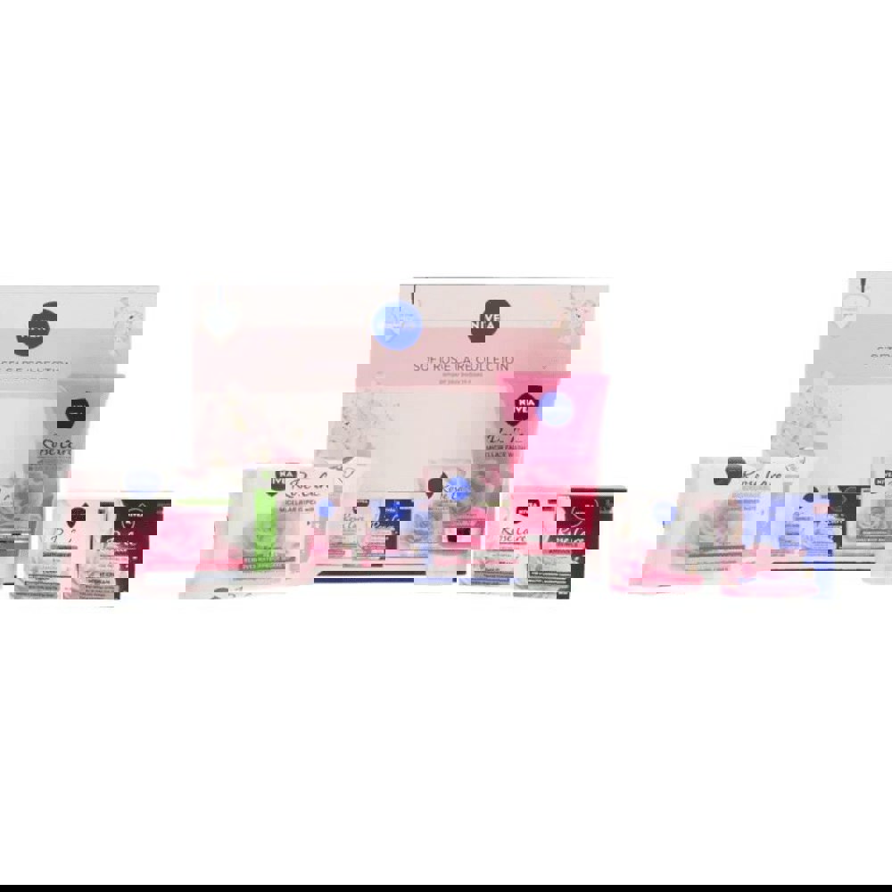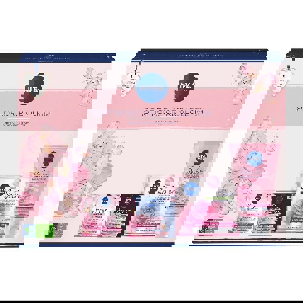 Treat your skin to gentle, radiant care with the Nivea Soft Rose Care 4pc Gift Set. Featuring a 150ml Face Wash, 50ml Day Cream, 50ml Night Cream, and 25 soft cleansing wipes, this set is enriched with rose extract to cleanse, hydrate, and soothe. Perfect for daily skincare or as a thoughtful gift, it leaves your skin feeling fresh, smooth, and delicately scented with a touch of rose.