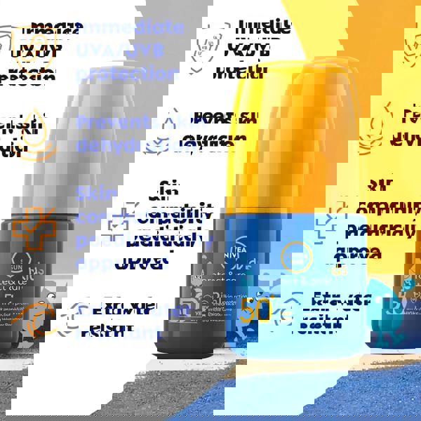 Created for active days outdoors, Nivea Sun Kids Protect & Care Roll-On SPF50+ is a kids’ sunscreen in a convenient roll-on format. The fast-absorbing, easy-to-spread formula provides immediate UVA & UVB protection and is developed for the needs of kids’ delicate skin.