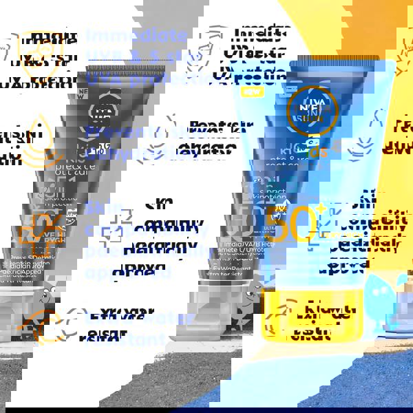 Created for days outdoors, NIVEA Sun Kids Protect & Care To Go SPF50+ Lotion provides immediate UVA & UVB protection in a convenient 50ml format. Developed for kids’ delicate skin, the formula is paediatrically and dermatologically approved and is easy to spread for quick application and reapplication on the go.