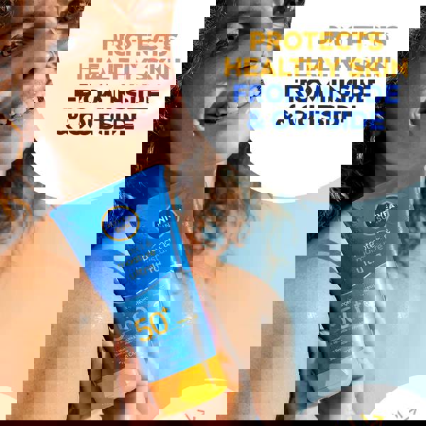 For high daily protection with a moisturising finish, Nivea Sun Protect & Moisture Ultra Sun Cream SPF50+ combines immediate UVA and UVB protection with a formula enriched with anti-oxidative vitamin E. Created to help keep skin moisturised for up to 48 hours, it suits days spent outdoors when reliable coverage and comfort matter.