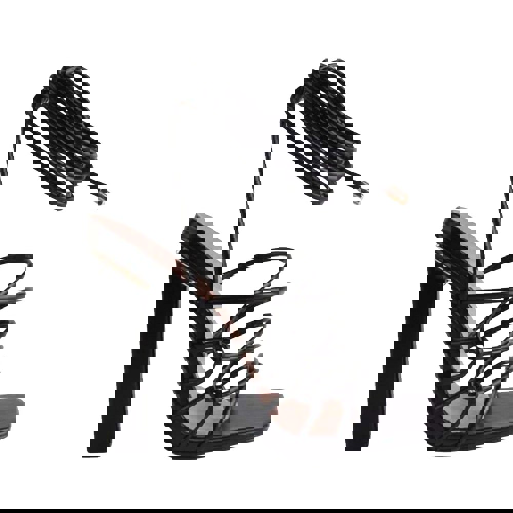 A block heel adds a defined profile, while the tie-up strap fastening secures the fit and highlights the strappy styling. Finished in black, this pair offers a streamlined look that suits a wide range of outfits.