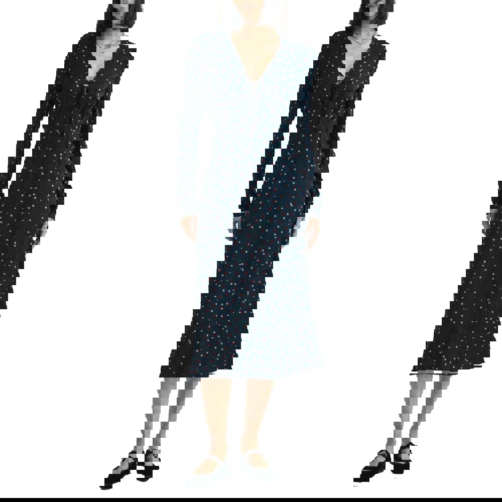 Crafted from 100% Lenzig EcoVero viscose, this Lily midi dress from Nobody's Child comes in black with a polka dot design. It is finished with a V neck and long sleeves, creating a clean silhouette suited to everyday wear.