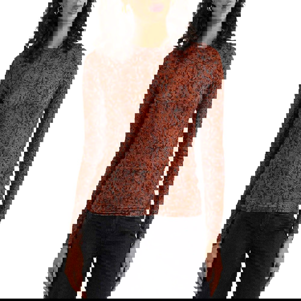 Spencer top from Nobody's Child in a brown and black animal print. Made from jersey with a soft-touch finish and added stretch, it offers a comfortable feel for everyday wear. The design is finished with a crew neckline and long sleeves for a clean, easy-to-layer silhouette.
