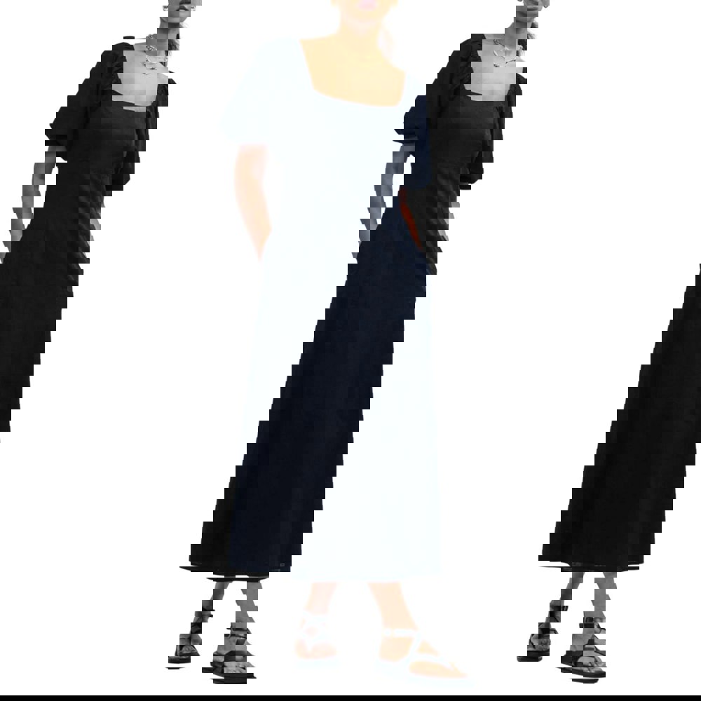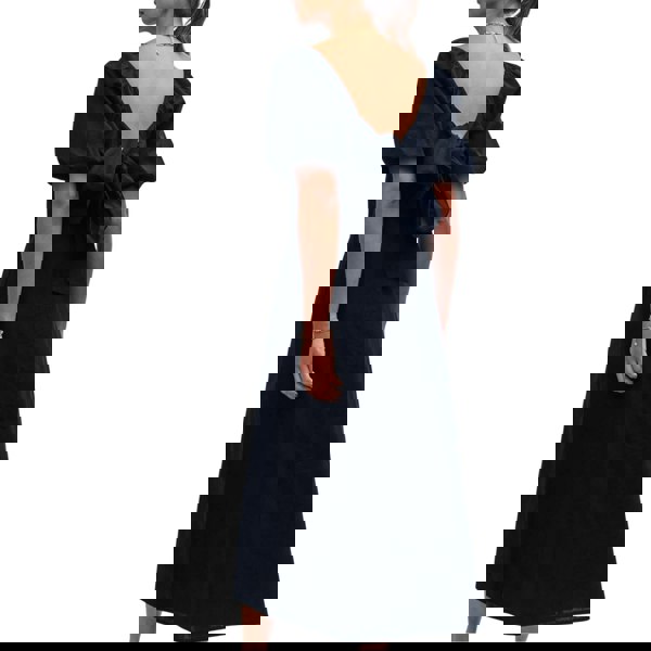 This plain Talitha midi dress comes in black with an elasticated square neckline and short puff sleeves. An open back and tie-back detail create a defined finish, while elasticated cuffs complete the sleeves.