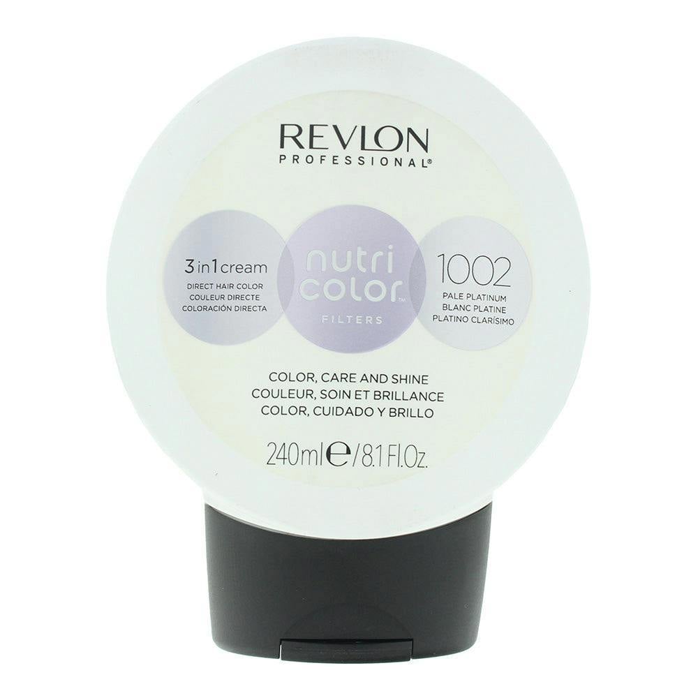 Revlon Nutri Color Filters 1002 Pale Platinum 3 In 1 Hair Cream is a hair cream in a 240ml size. The product name indicates a 3-in-1 format and the shade 1002 Pale Platinum.