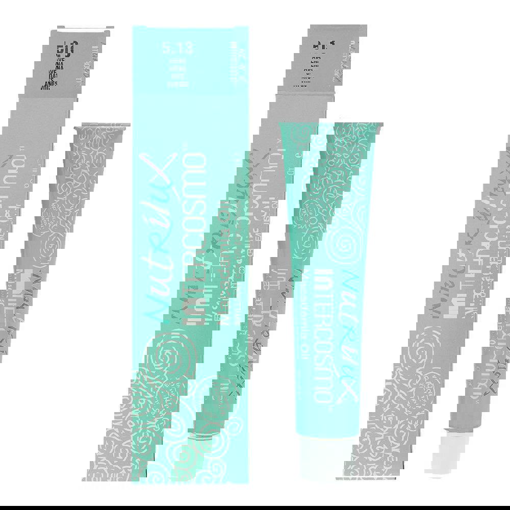 Intercosmo Nutrilux Macadamia Oil 5.13 is a permanent hair colour in a light brown golden ash shade. The 60ml format is suitable for professional colour services and at-home colouring routines where a measured amount of colour cream is required.
