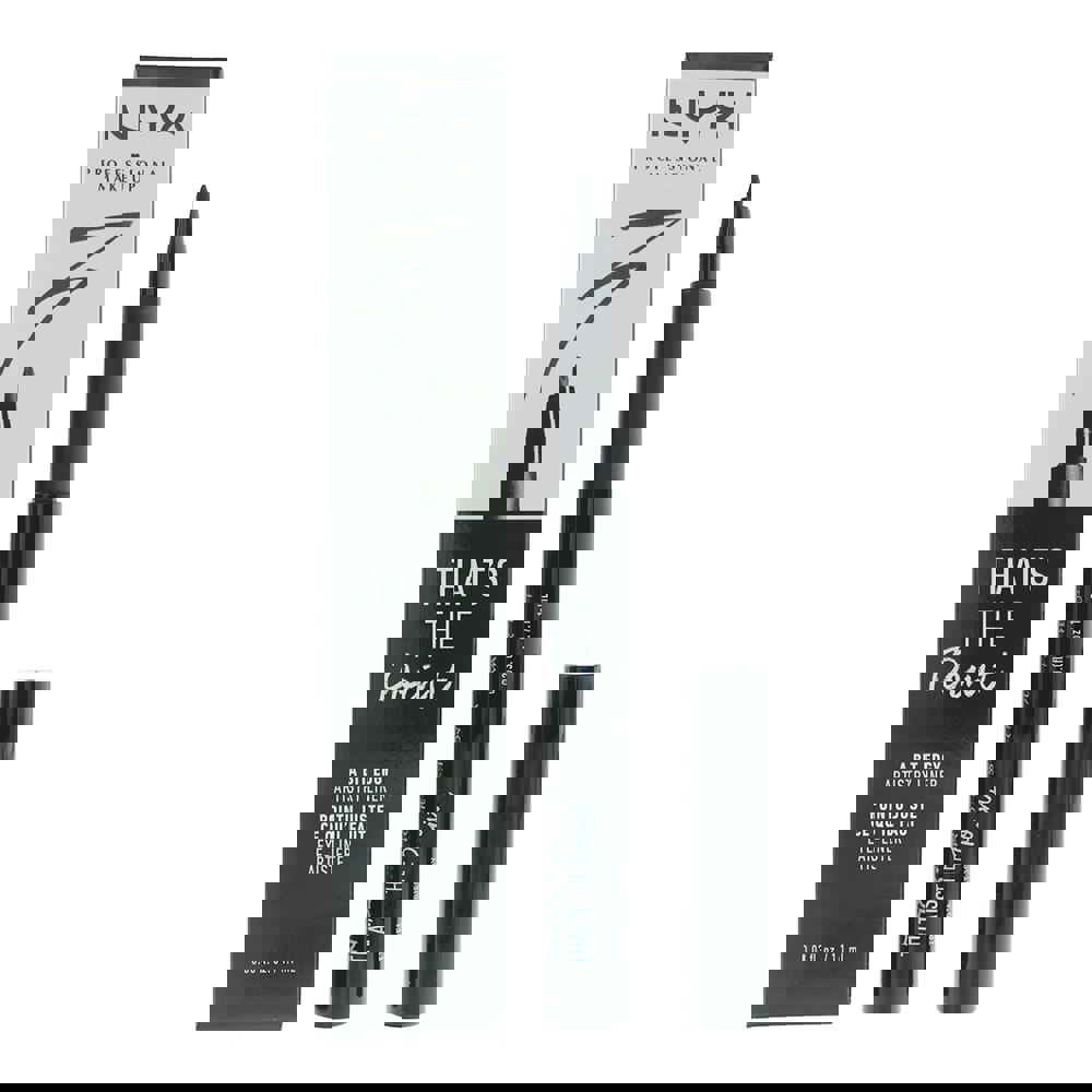 NYX Professional Makeup That's The Point A Bit Edgy Black Liquid Eyeliner is a bold, high-impact eyeliner designed to create precise lines with ease. The innovative felt-tip applicator allows for controlled application, whether you’re aiming for a fine line or a dramatic wing. The deep black formula delivers intense colour payoff, making it perfect for defining the eyes with a striking, edgy look.
