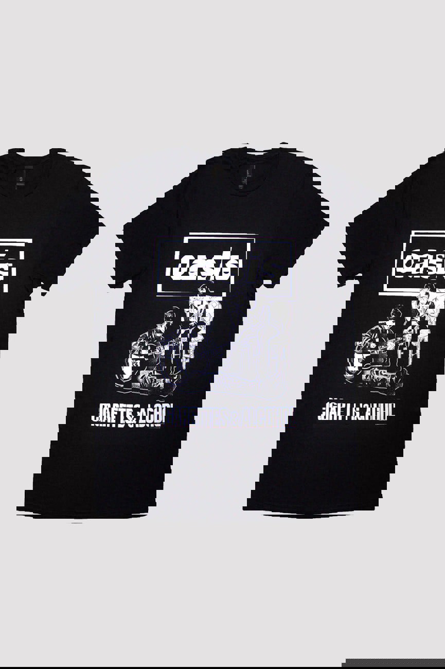 An official licensed Oasis T-Shirt featuring the Cigarettes & Alcohol Illustration Mono design motif. This high quality T-Shirt is available in a black colourway. Comes in a wide range of sizes from Small through XX-Large, subject to availability.
