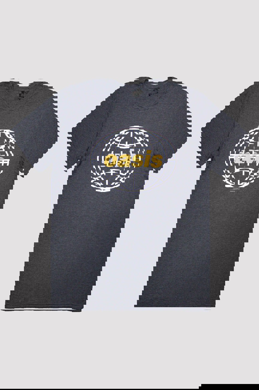 An official licensed Oasis T-Shirt featuring the Globe Logo design motif. This high quality T-Shirt is available in a navy blue colourway. Comes in a wide range of sizes from Small through XX-Large, subject to availability.
