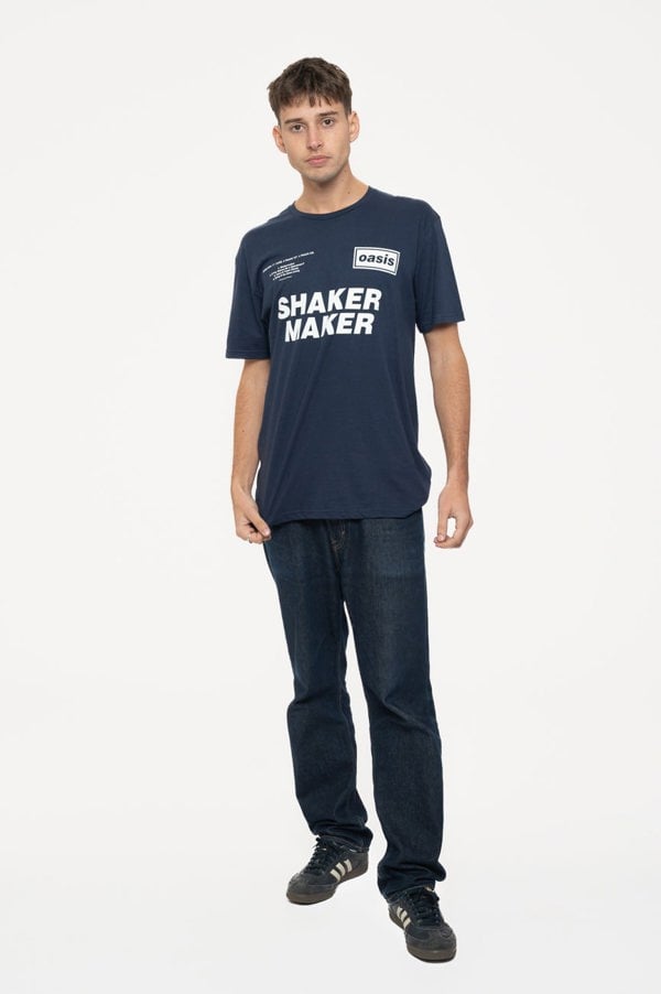 Official licensed Oasis Unisex T-Shirt featuring the 'Shakermaker Tracklisting' design motif. High quality T-Shirt available in a navy blue colourway. High quality soft-style cotton unisex t-shirt featuring front printing. Comes in a wide range of sizes from Small through XX-Large, subject to availability.