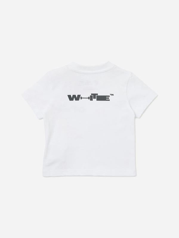 Off-White brings a clean, graphic finish to everyday dressing with the Baby Type T-Shirt in white. Made for babies, this short-sleeved style stands out with a contemporary print that gives the piece its modern character. A simple base colour keeps the look crisp and easy to pair, while the focus stays on the bold visual detail.