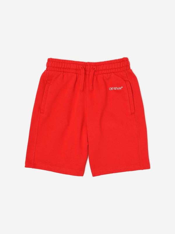 Off-White Boys Bookish Diag Sweatshorts in Red suit casual wear, offering an easy option for building outfits around statement colour and signature striping.