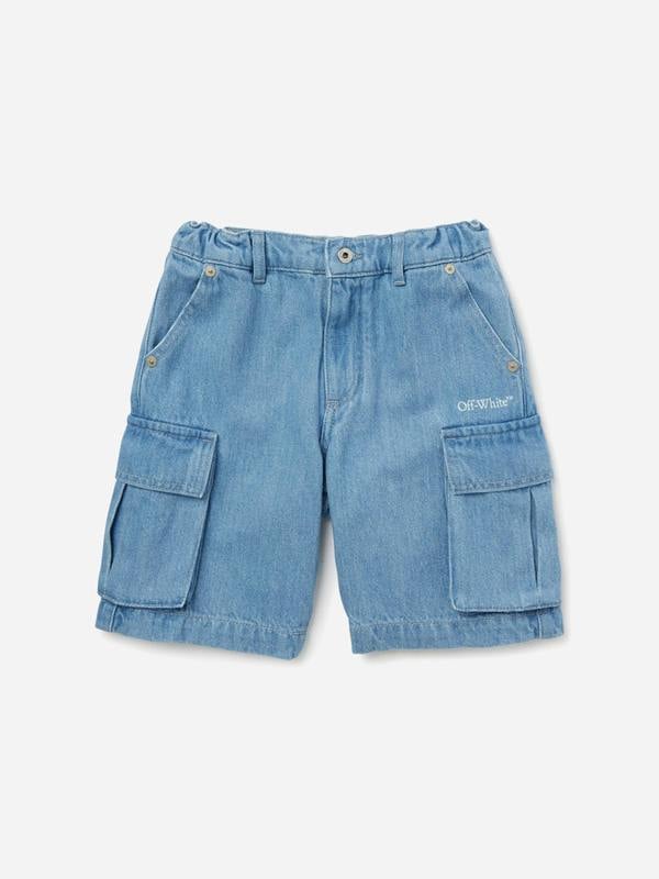 Cargo pockets add utility, while the blue colourway keeps the finish classic and easy to wear. Off-White branding is expressed through the signature diagonal motif, giving these shorts a recognisable designer identity.