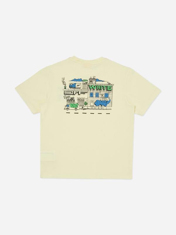 Bold colour meets graphic impact in the Off-White Boys Graffiti T-Shirt, a yellow tee with a graffiti design. Made for boys, it brings a statement look to everyday outfits and sits within the SS2026 season.