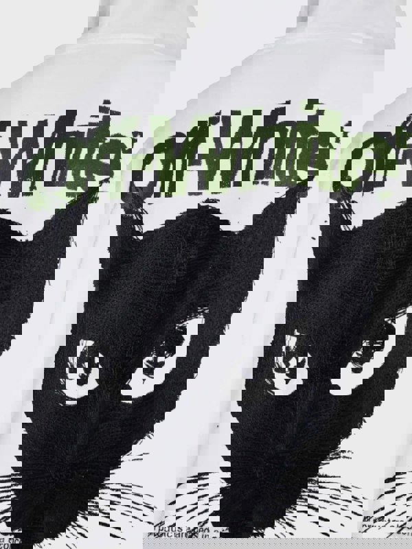 Featuring a bold graphic design that merges feline imagery with skate culture aesthetics, this piece delivers contemporary edge with refined execution.