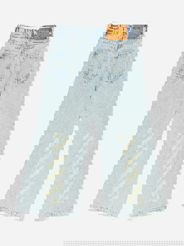 Introducing the Off-White Girls Diag Sketch Denim Jeans in Blue, a quintessential piece for your girl's SS2026 wardrobe. Perfectly blending high-fashion with casual comfort, these jeans offer a standout sartorial statement. Key features include: