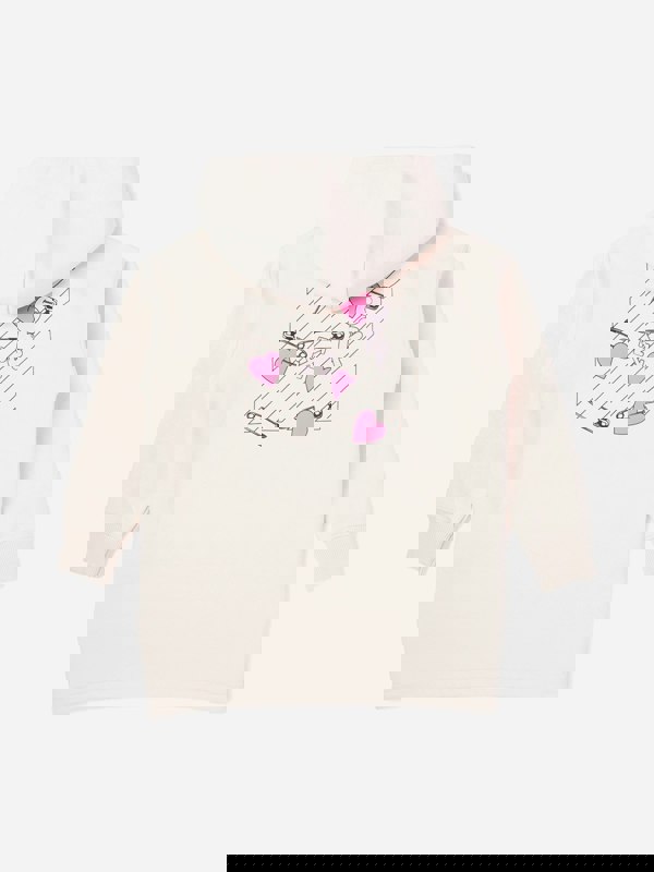 Off-White girls’ Diagonal Pop Heart hoodie dress in soft pink, made in Portugal from 100% cotton. A clean silhouette is paired with signature graphics, including an Off-White logo with a pink heart on the front and an iconic arrow print with hearts on the back. A kangaroo pocket and ribbed trims complete the look.