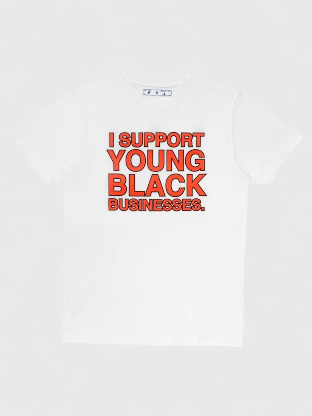 Make a statement with this Off-White ISYBB T-Shirt, a sophisticated piece that merges high-fashion design with meaningful messaging. Crafted in crisp white, this tee features the iconic "I Support Young Black Business. " slogan, reflecting Off-White's commitment to social consciousness. The clean aesthetic and premium construction ensure versatility for both casual and elevated styling. A wardrobe essential that celebrates entrepreneurship and community support whilst maintaining the brand's signature minimalist elegance.